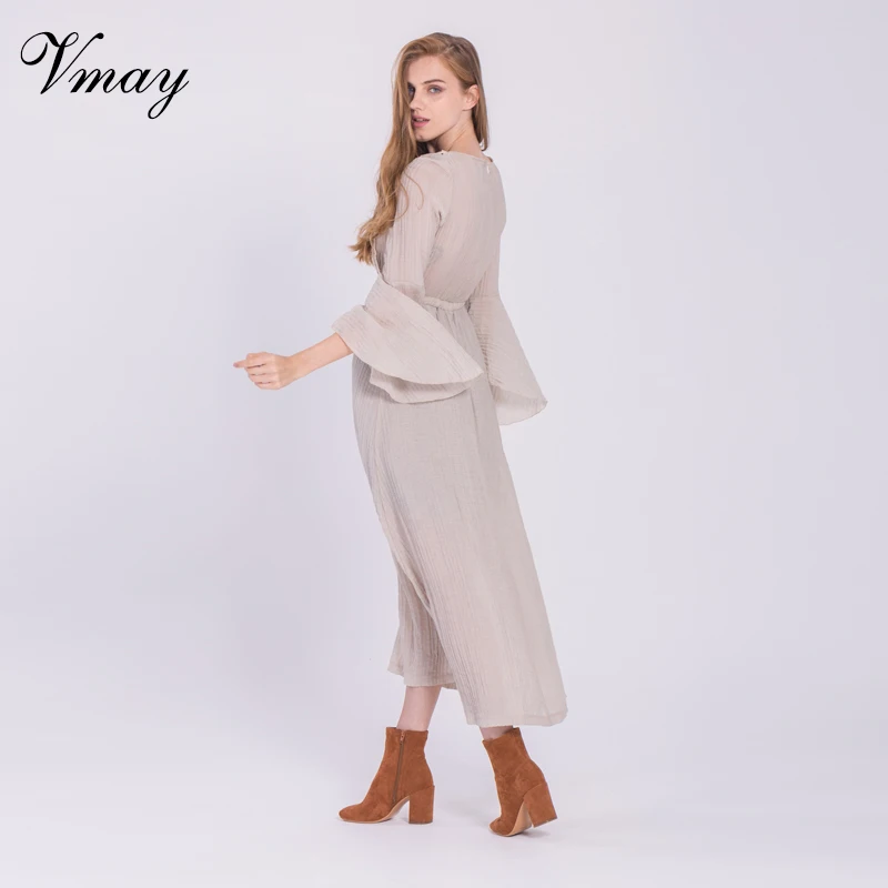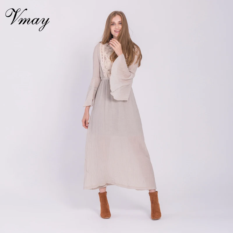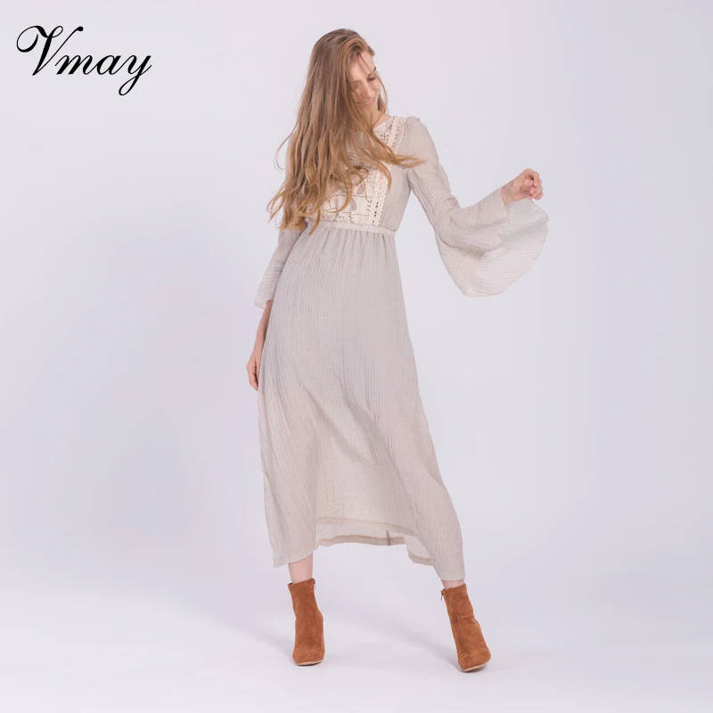 Kopen Goedkoop Vmay Vrouwen Mode Bohemian Lange Jurken Herfst Winter Kant Patchwork O Lange Butterfly Mouwen Straight Maxi Jurk V1708088 Prijs