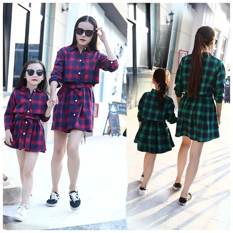 Kopen Goedkoop Lente katoen mama en me kleding plaid print mama en dochter jurk outfits bijpassende moeder dochter clothing meisje familie look Online