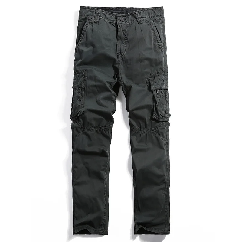 Goede Koop AIRGRACIAS Multi Pocket Heren Cargo Broek Donkergrijs Straight Cargo Broek Mannen Militaire Stijl Casual Katoen Materiaal Maat 29 40 Goedkoop