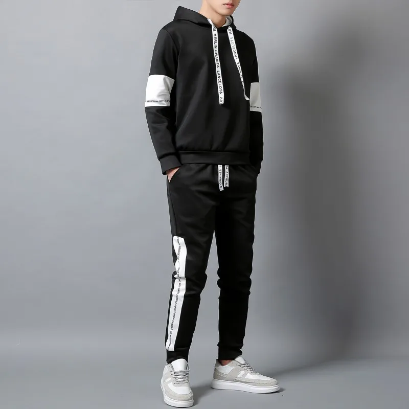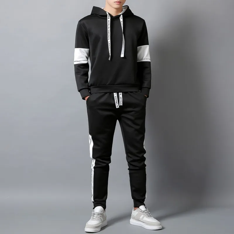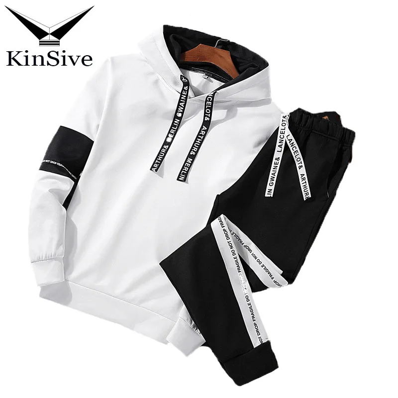 Beste Kopen 2018 Brand Trainingspak Mannen Set Lente Mannen Sportkleding Tweedelige Sporting Suit Capuchon + Broek Sweatsuit Voor Mannen Kleding Goedkoop