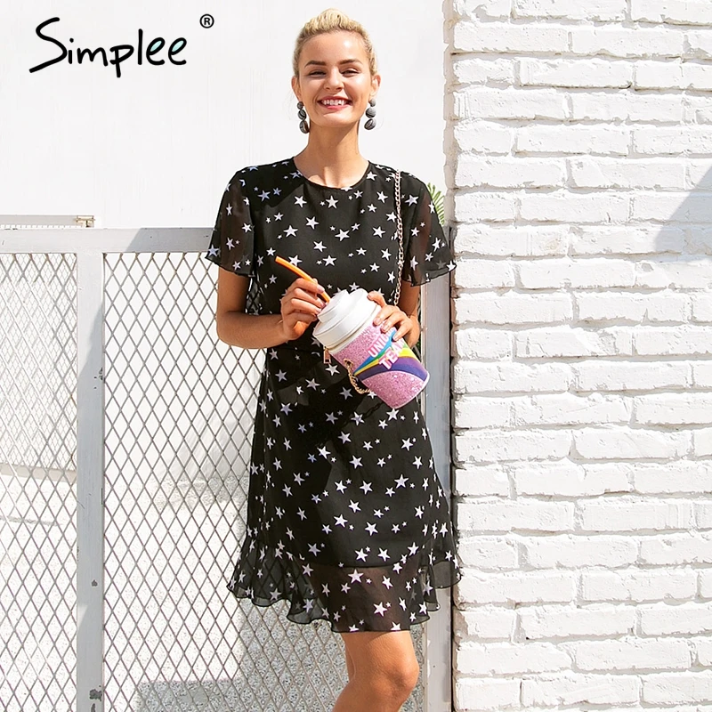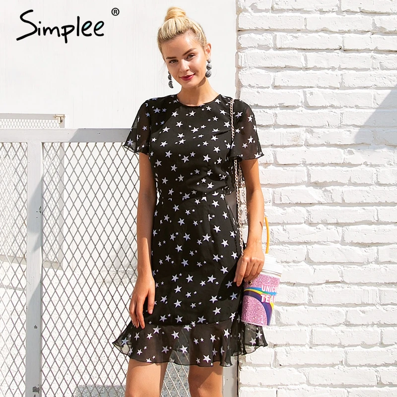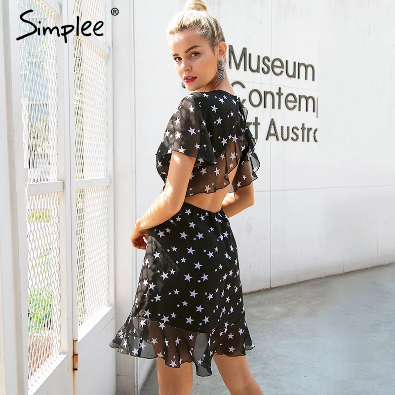 Goede Koop Simplee Backless ster zomer vrouwen jurk Chiffon casual mini jurk party 2018 Lente kleding vestidos zwarte korte jurk vrouwelijke Goedkoop.