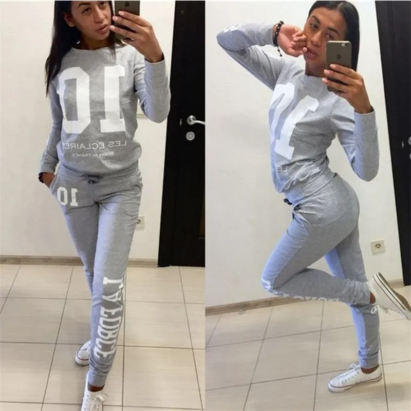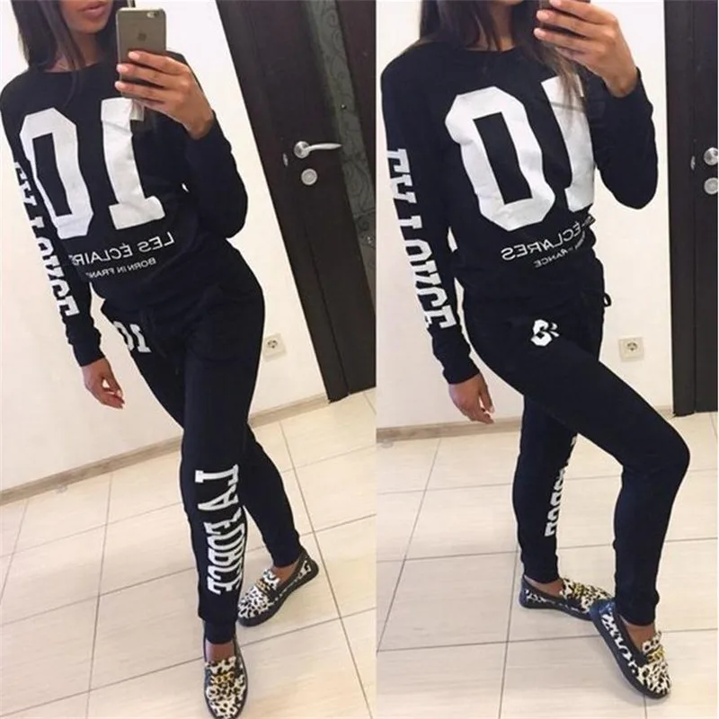 Kopen Goedkoop Nieuwe vrouwen alfanumerieke 10 Run joggingpakken Kleding Sport Set trui shirt En Broek Gym Fitness workout 2 stks sets Prijs.