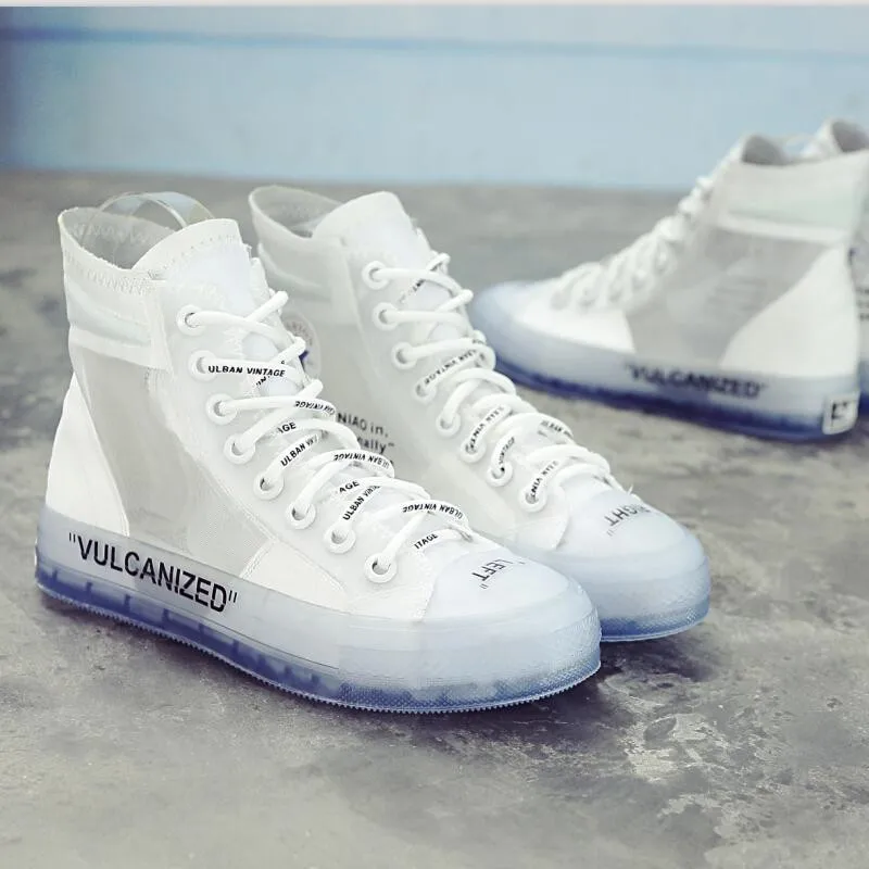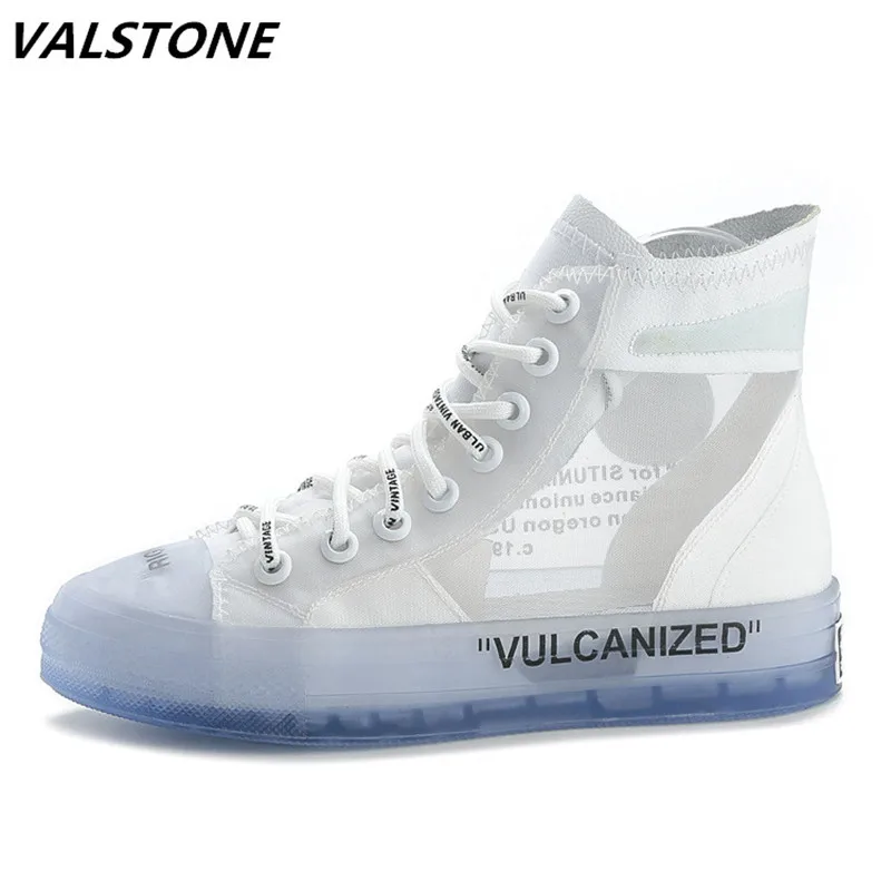 Beste Koop 2018 Nieuwe Trending Stijl Lente En Zomer Met Witte Schoenen Vrouwen Platte Lederen Canvas Hoge Tops Transparant Casual Schoenen Vrouwelijke Goedkoop