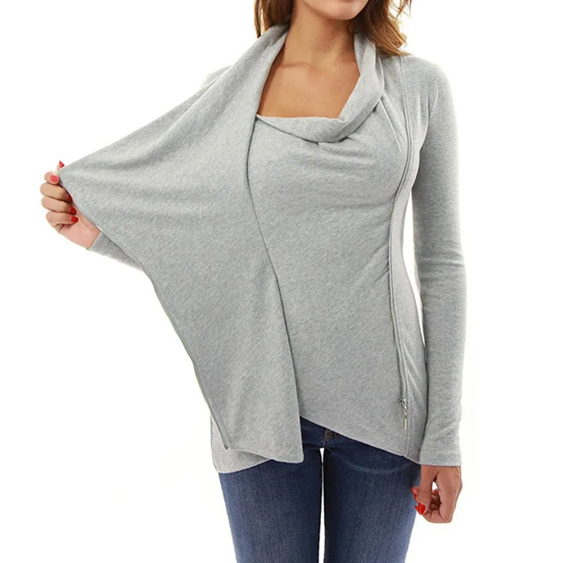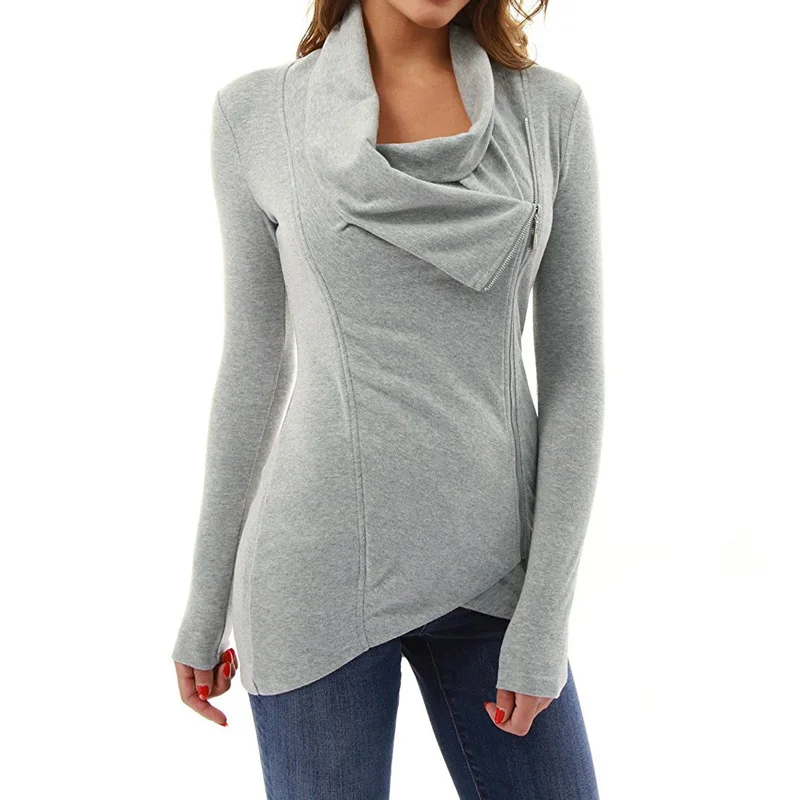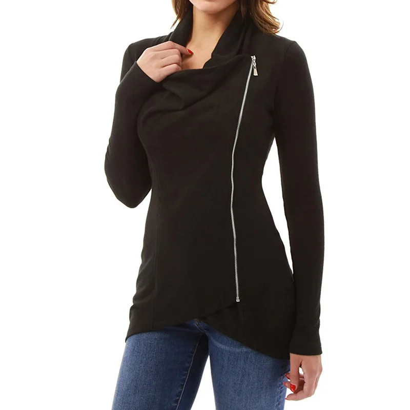 Beste Koop ZANZEA Lente Elegante Vrouwen Boog Kraag Lange Mouwen Rits Onregelmatige Zoom Silm Solid Blouse Work Party Parchwork Shirt Plus Size Goedkoop.